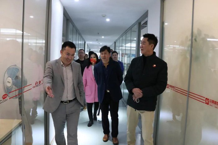 在豐華集團,走訪團隊得到副主席盧沛芳的熱情接待,先后參觀公司各個功能區(qū)域。在公司部門負責人的介紹下,走訪團隊詳細了解過去一年企業(yè)的發(fā)展形勢、地產(chǎn)項目、前景規(guī)劃等方面,悉心傾聽企業(yè)所思所急及對商會工作的意見建議。